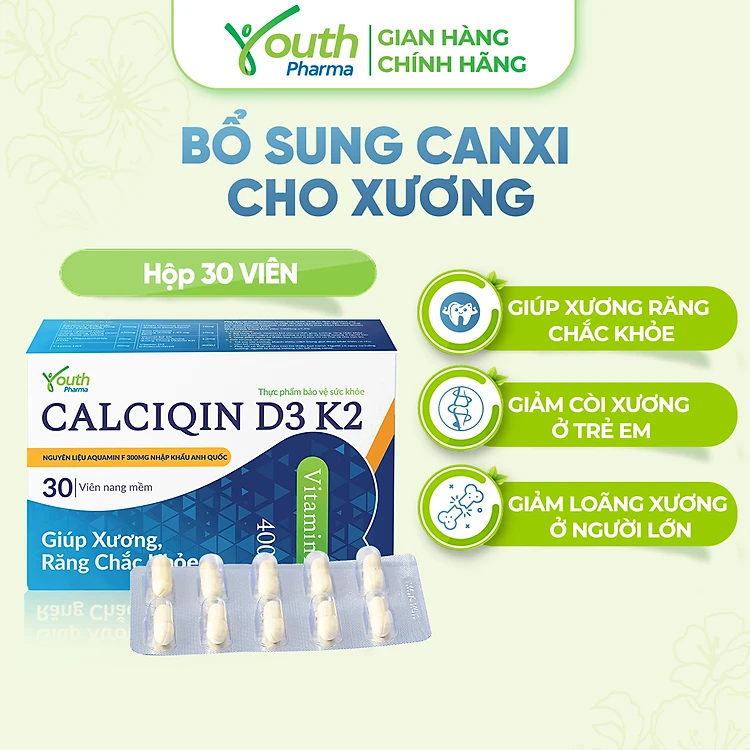 Viên Uống Calciqin D3 K2 Youth Pharma Giúp Xương, Răng Chắc Khỏe - Hộp 30 Viên