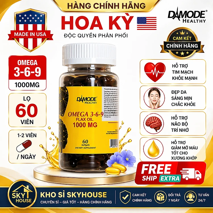 Viên uống hỗ trợ tim mạch OMEGA 369 DAMODE lọ 60 viên hỗ trợ tăng cường trí não chính hãng Hoa Kỳ