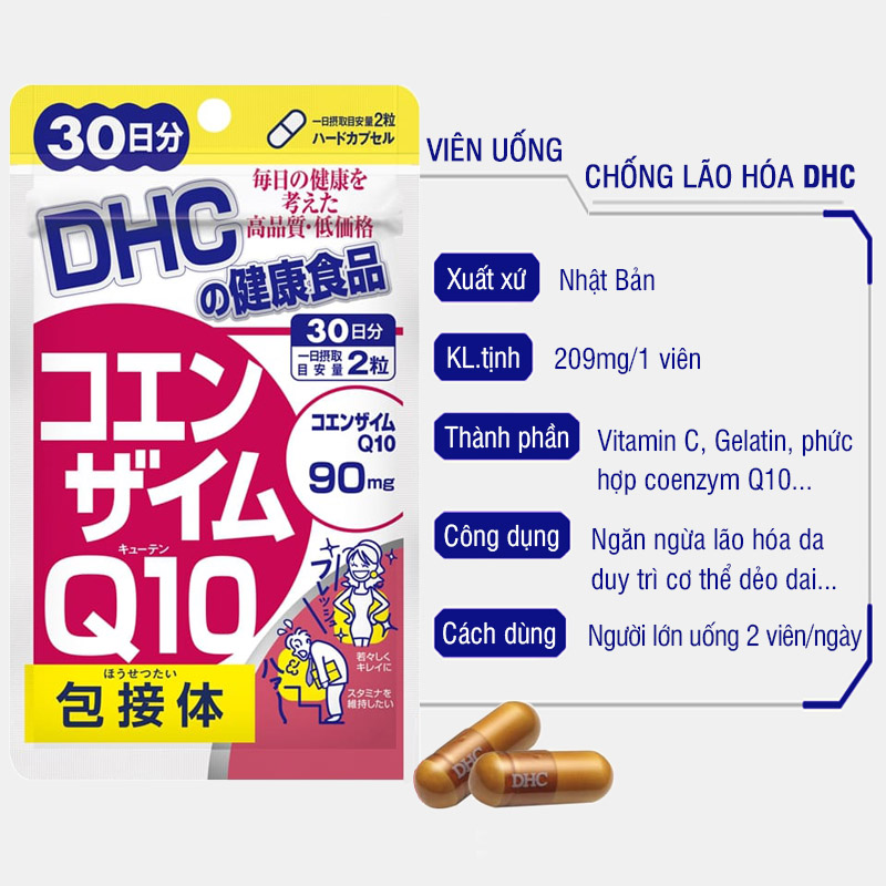 Viên uống chống lão hóa da DHC Nhật Bản Coenzyme Q10 thực phẩm chức năng bổ sung vitamin C làm đẹp da, hỗ trợ não bộ JN-DHC-COE