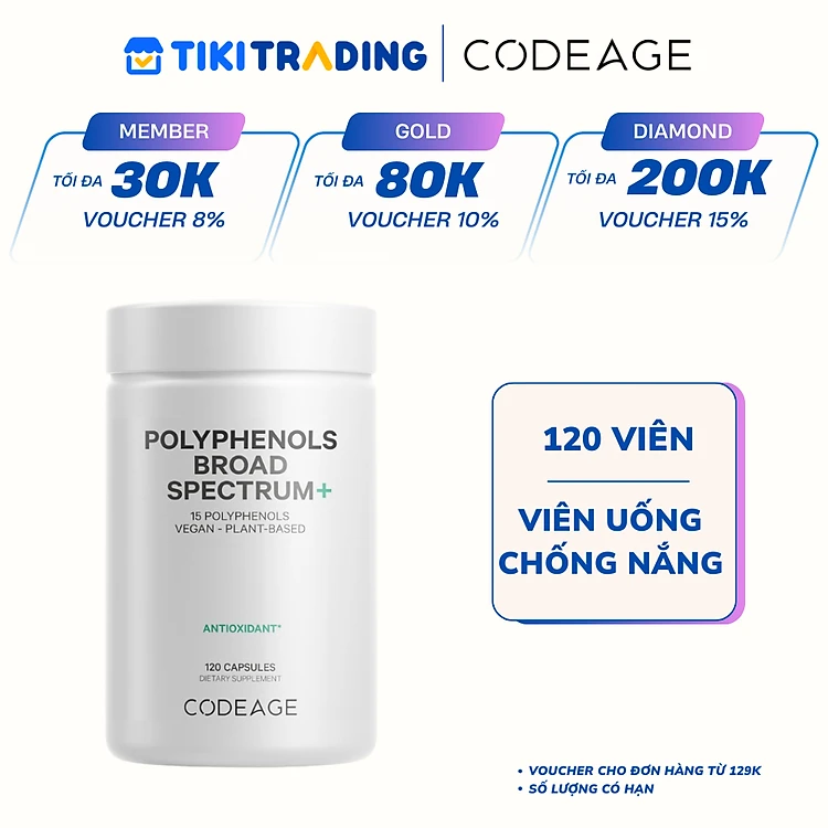 Viên uống chống nắng Codeage Polyphenols Broad Spectrum (120 viên)