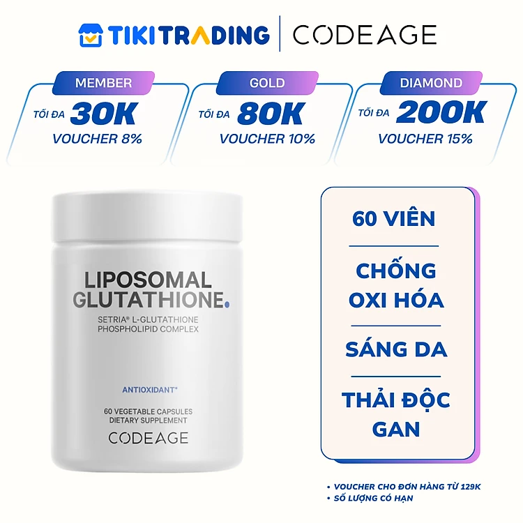 Viên Uống Chống Oxy Hóa, Làm Sáng Da, Thải Độc Gan Codeage Liposomal Glutathione (60 Viên)