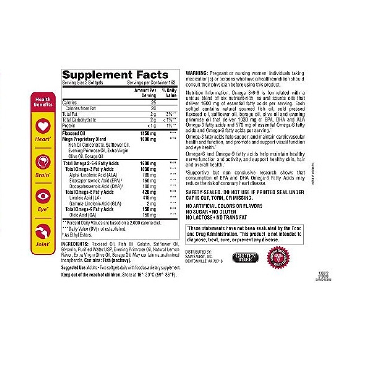 Viên Uống Dầu Cá Member’s Mark Omega 3-6-9 Supports Heart Health Hộp 325v Nội Địa Mỹ Hộ Trợ Tim Mạch, Cải Thiện Trí Nhớ, Mắt Sáng, Bảo Vệ Xương Khớp và Đẹp Da