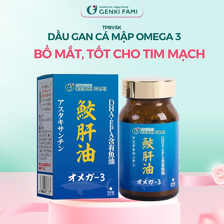 Viên Uống Dầu Gan Cá Mập Omega 3 DHA EPA Hỗ Trợ Bổ Mắt, Bổ Não, Tốt Cho Tim Mạch Genki Fami Nhật Bản Hộp 90 Viên