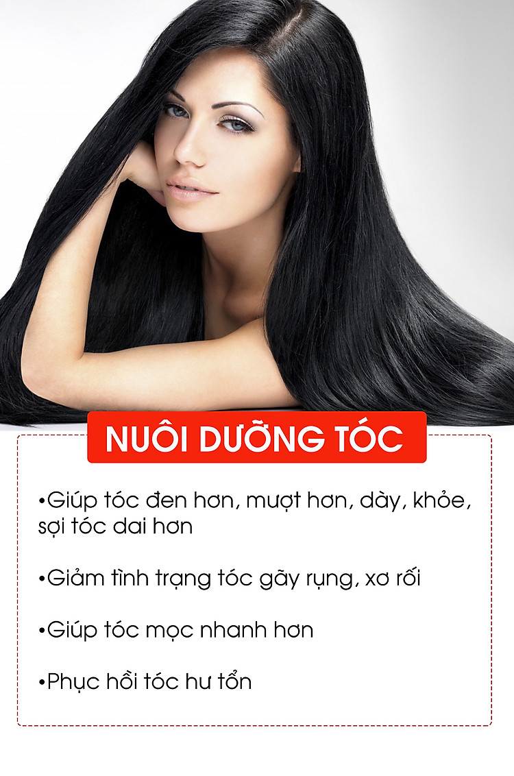 • Giúp tóc đen mượt hơn, dày, khỏe, sợi tóc dai hơn