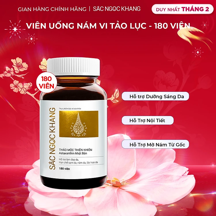 Viên uống đẹp da - chống lão hóa - nám sạm tàn nhan Sắc Ngọc Khang Vi Tảo Lục Hộp 180 Viên