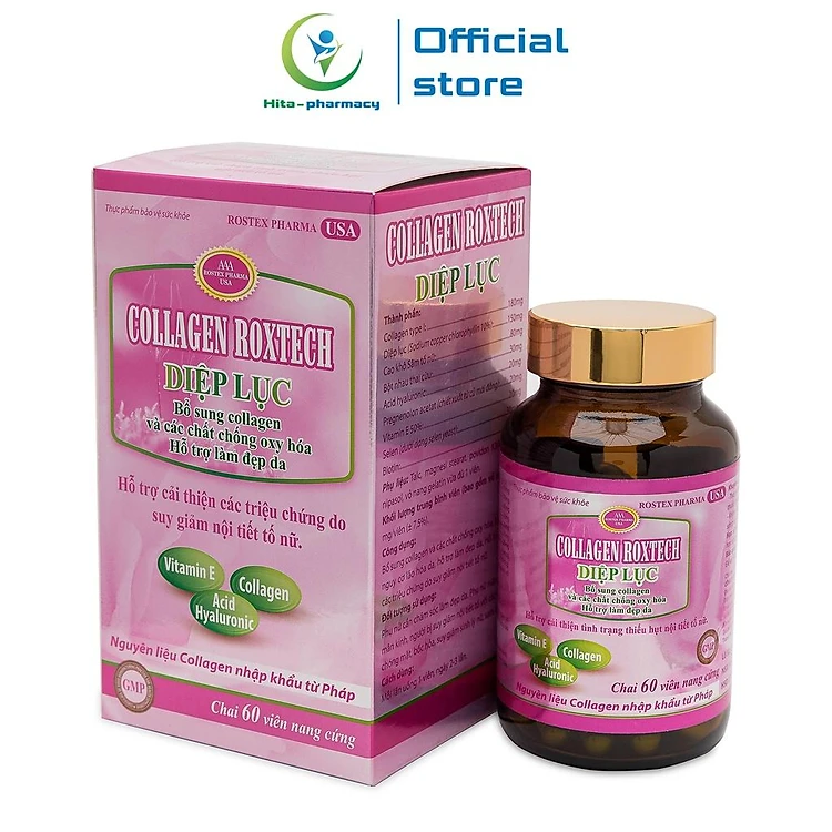 Viên uống đẹp da Collagen Roxtech Diệp Lục tăng nội tiết tố - Chai 60 viên
