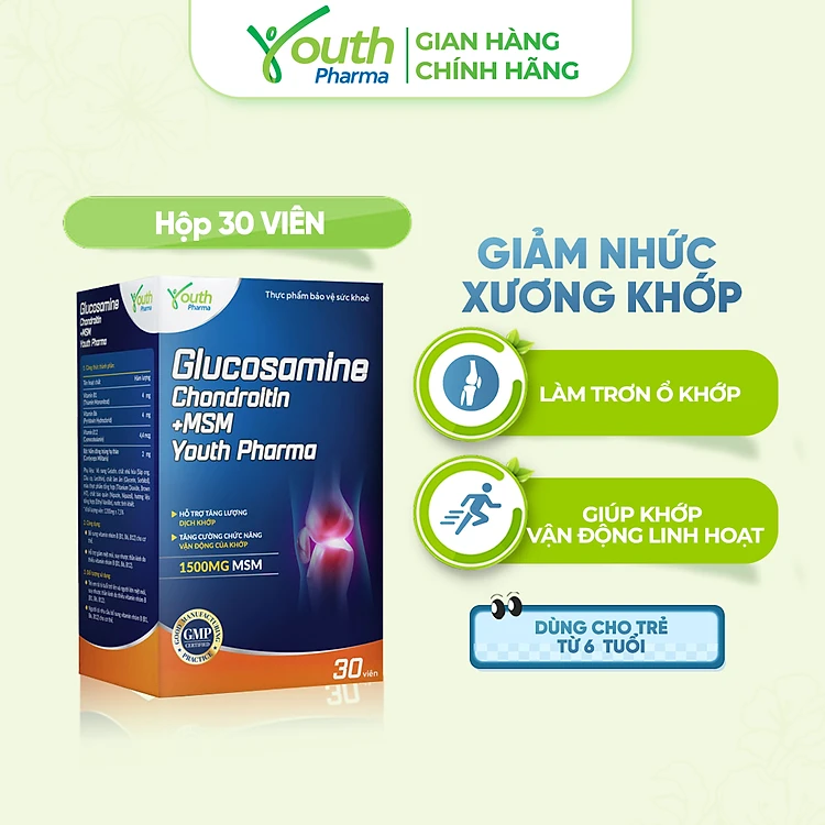 Glucosamine Chondroitin + MSM Youth Pharma Hỗ Trợ Xương Khớp - Hộp 30 Viên