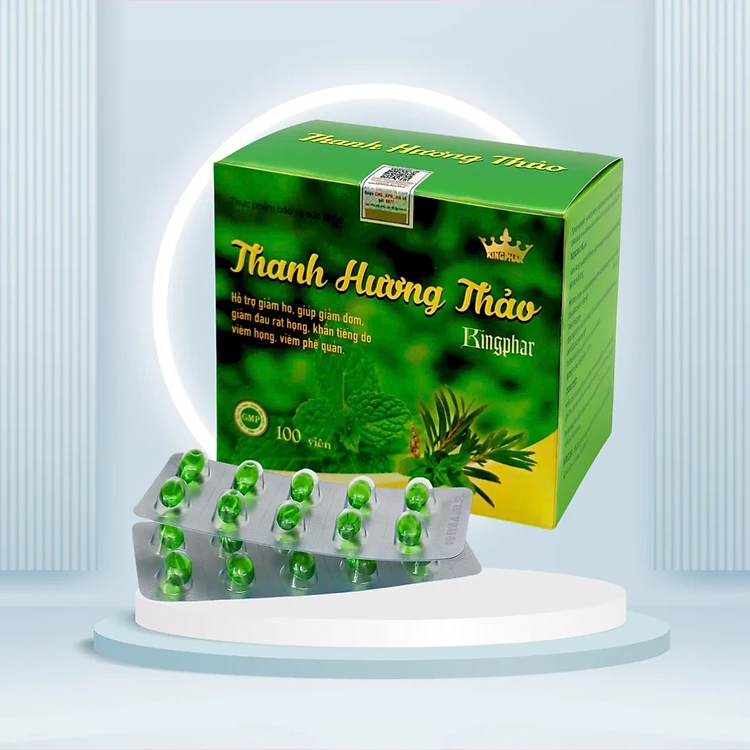 Viên uống ho dầu Thanh hương thảo Kingphar, hộp 100 viên, hỗ trợ giảm ho, thông cổ