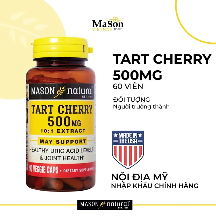 Viên Uống Hỗ Trợ Bệnh Gout Mason Natural Tart Cherry – Giúp Giảm Acid Uric Trong Máu (Hộp 90 viên)