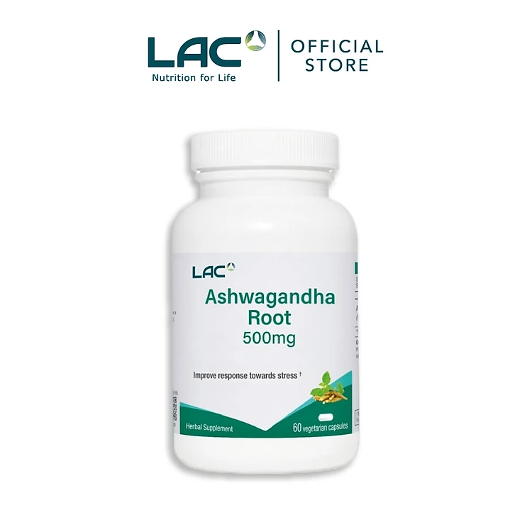 VIÊN UỐNG HỖ TRỢ GIẤC NGỦ CHIẾT XUẤT RỄ SÂM ẤN ĐỘ LAC ASHWAGANDHA ROOT 500MG (60 VIÊN)