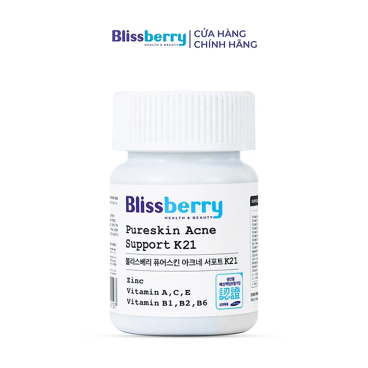 Viên uống hỗ trợ giảm mụn Blissberry Pureskin Acne Support K21 hộp 20 viên
