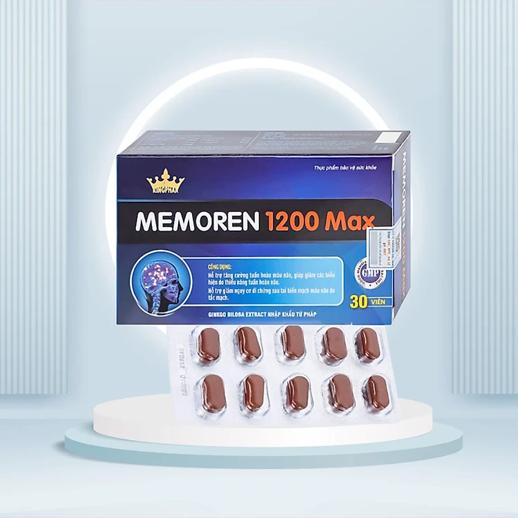 Viên uống Memoren 1200 Max Kingphar, hộp 30v, tăng tuần hoàn não, giảm đau đầu, cổ vai, gáy