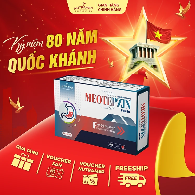 Viên uống Meotepzin Forte hỗ trợ giảm đầy bụng, chướng hơi, khó tiêu (30 viên) - Nutramed