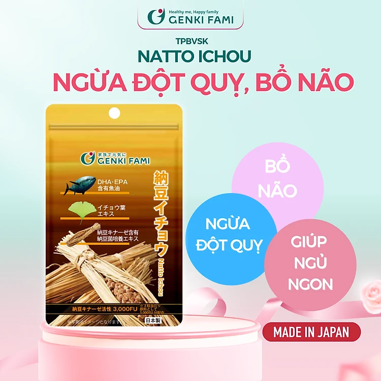 Viên Uống Nattokinase 3000FU Phòng Ngừa Đột Quỵ, Bổ Não, Giúp Ngủ Ngon Natto Ichou Genki Fami Nhật Bản Túi 30 Viên