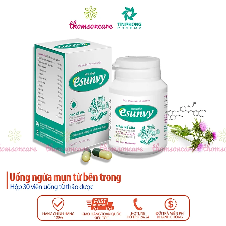 Viên uống ngừa mụn Esunvy - Sạch mụn trứng cá, đầu đen, mờ vết thâm - Mát gan, thải độc từ thảo dược, cao kế sữa