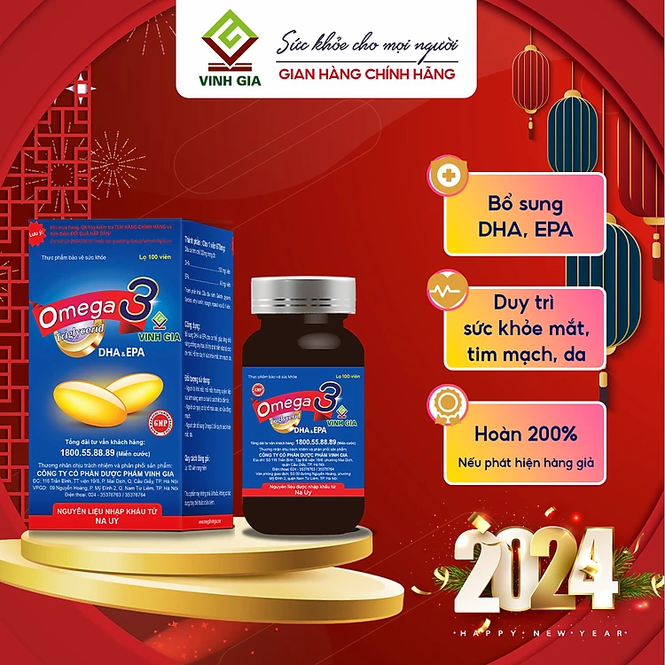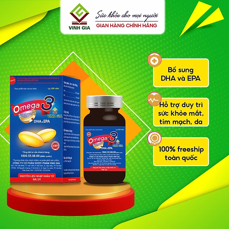Viên Uống Omega 3 VINH GIA Bổ Sung DHA Và EPA Hỗ Trợ Duy Trì Sức Khỏe Mắt Và Tim Mạch Hộp 100 Viên