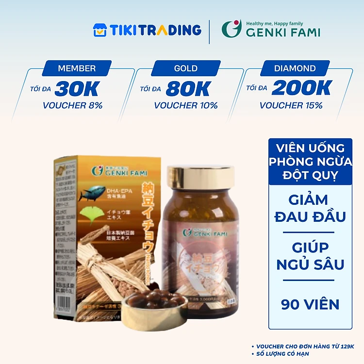 Viên Uống Phòng Ngừa Đột Quỵ, Bổ Não Nattokinase 3000FU Natto Ichou Genki Fami Nhật Bản