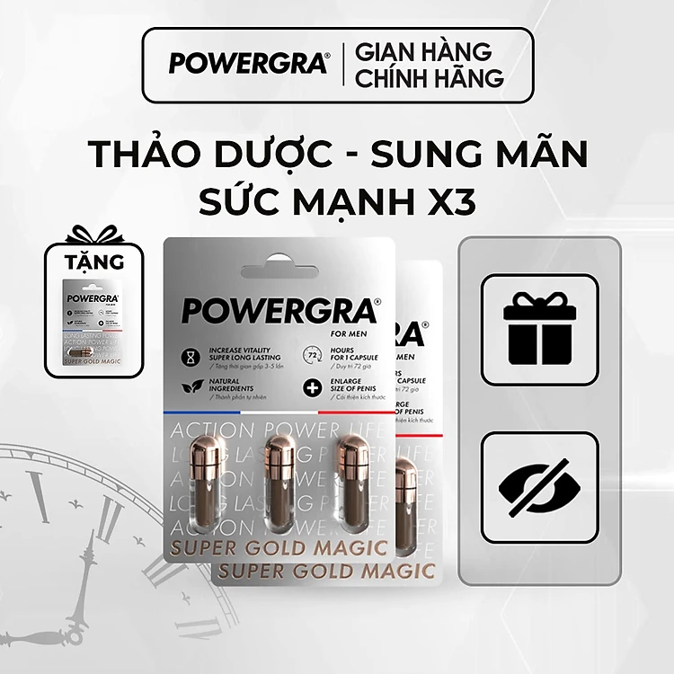 Bộ 2 vỉ 3 viên uống phục hồi và tăng cường sinh lý nam giới Powergra For Men (Super Gold Magic) tặng 1 viên dùng thử