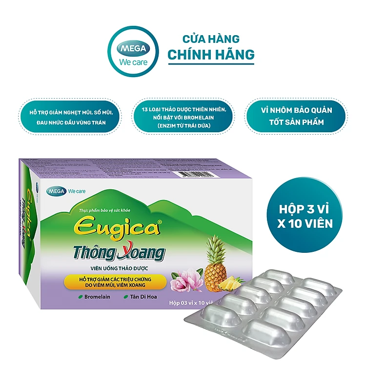 Viên uống thảo dược hỗ trợ giảm các triệu chứng do viêm mũi, viêm xoang EUGICA THÔNG XOANG (Hộp 3 vỉ x 10 viên)