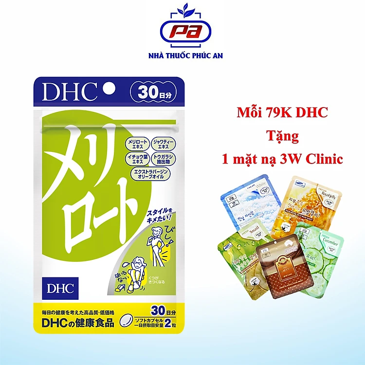 - Viên uống DHC Melilot giúp giảm đau, sưng phù nề cho đôi chân bị tích nước thừa, đôi chân phải đi đứng trên giày cao gót cả ngày. DHC Melilot chiết xuất từ tinh chất melilot thuộc họ đậu, bên cạnh đó là chiết xuất trà Java, chiết xuất ginkgo biloba, chiết xuất hạt tiêu, tinh chất ô liu nguyên chất giúp bạn lấy lại đôi chân thon gọn nhanh chóng.