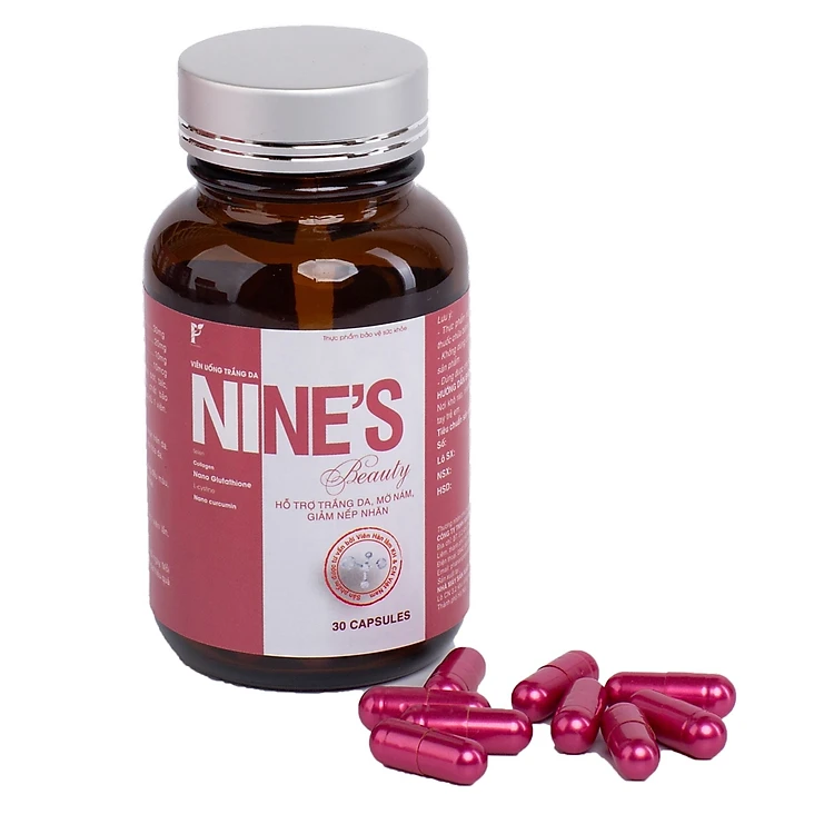 Viên Uống Trắng Da toàn thân Mờ Tàn Nhang Nine's Beauty bổ sung Collagen, Nano Glutathione, Nano Curcumin làm đẹp da hỗ trợ điều trị nám tàn nhang, chống lão hóa giảm nếp nhăn Điều hòa nội tiết tố nữ