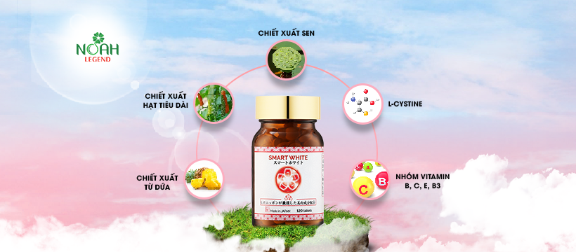 Viên uống trắng da Smart White là sản phẩm được sản xuất theo dây chuyền tiên tiến nhất của Nhật Bản, do Noah Legend độc quyền phân phối.