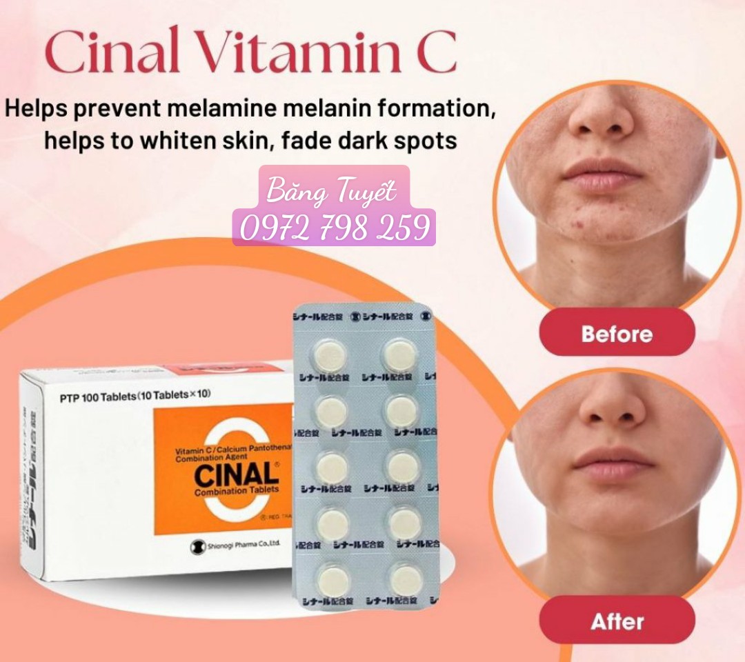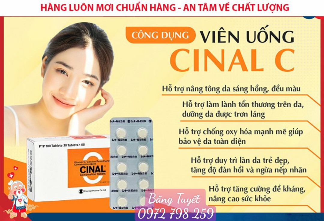 - Viên uống trắng sáng da Cinal C là sự kết hợp giữa Calcium Pantothenate (Vitamin B5)-và Ascorbic Acid (Vitamin C).