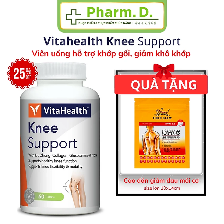 Viên Uống Hỗ Trợ Khớp Gối VITAHEALTH Knee Support Tái Tạo Xương Khớp Sụn Khớp (60 Viên)