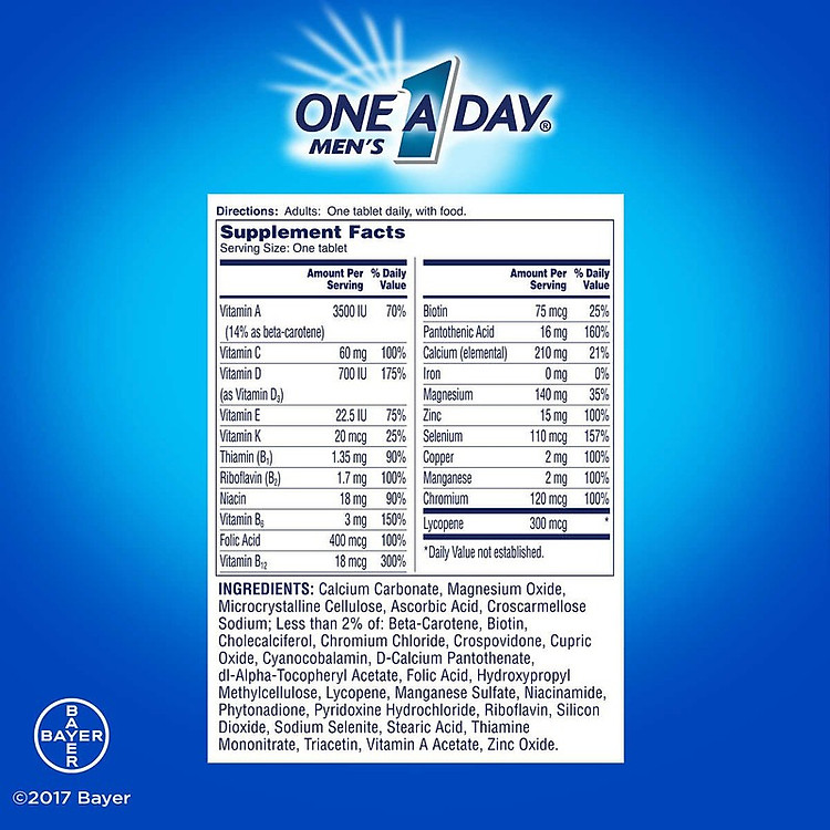 ☞ Vitamin tổng hợp One A Day Men's 300 viên thực sự cần thiết cho người đàn ông hiện đại, sản phẩm thích hợp với độ tuổi từ 18 - 49 tuổi.
