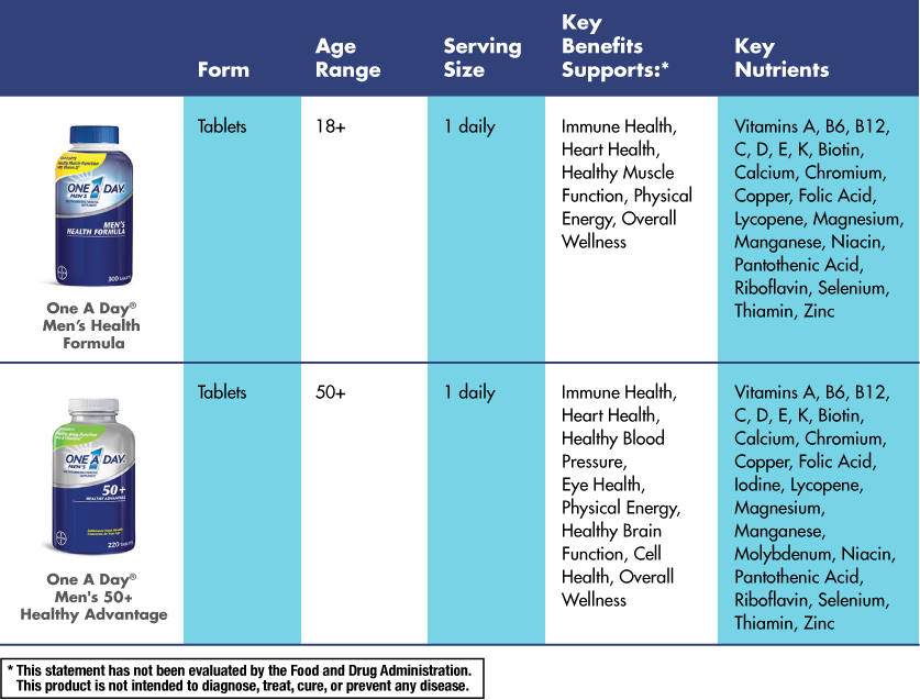➤ Viên uống One A Day cho nam là viên uống tổng hợp vitamin hoàn chỉnh với công thức đặc biệt giúp hỗ trợ vấn đề sức khỏe của nam giới (dưới 50 tuổi), tăng năng lượng, tăng cường sinh lực, tăng đề kháng giúp cơ thể khỏe mạnh cường tráng, sẵn sàng cho một ngày làm việc tích cực và hiệu quả.