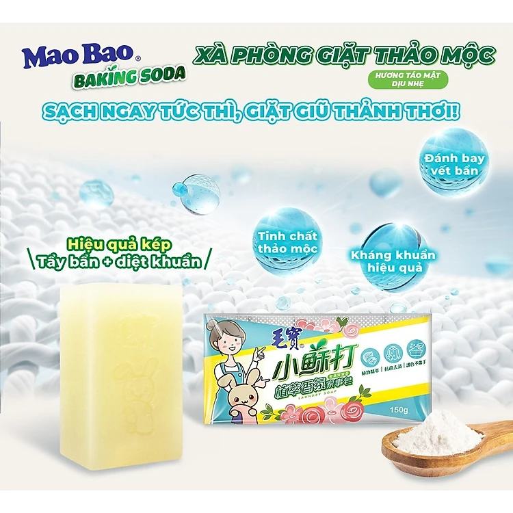 Viên Xà Phòng Giặt Thảo Mộc 150g, Sạch Ngay Tức Thì, Kháng Khuẩn Hiệu Quả, Đánh Bay Vết Bẩn
