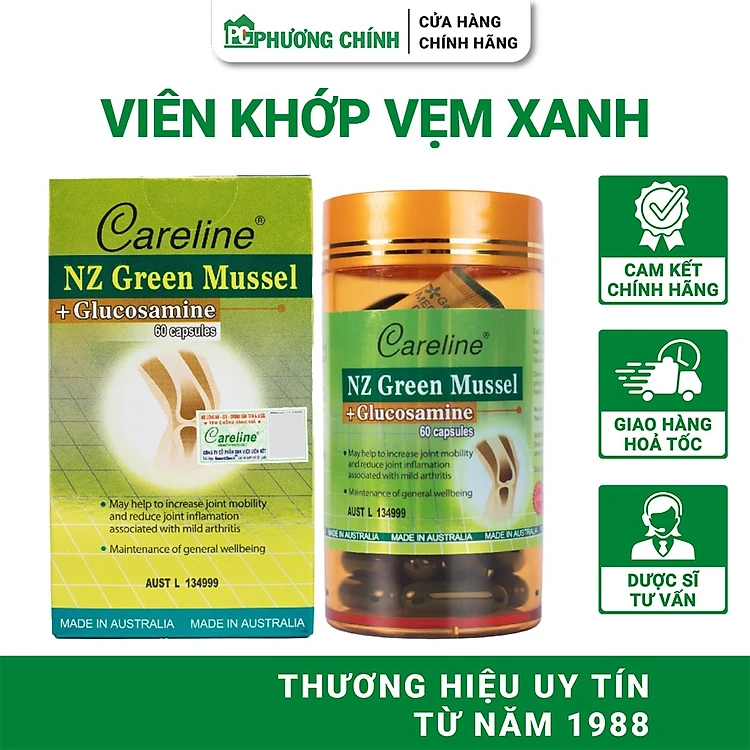 Viên Khớp Vẹm Xanh CareLine NZ Green Mussel Glucosamine Dành Cho Người Thoái Hoá Khớp, Khô Cứng Khớp 60 Viên/Hộp