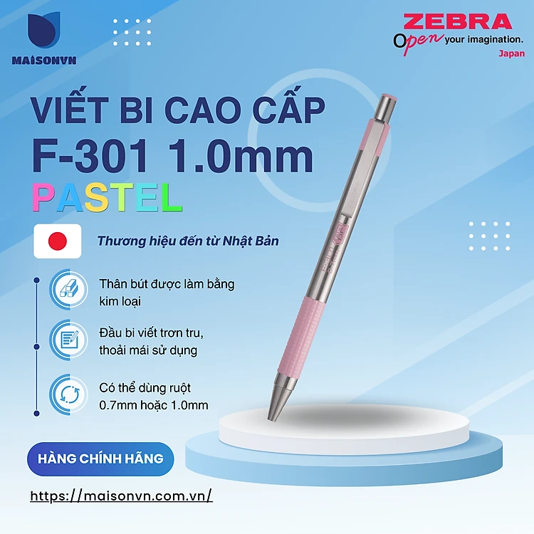 Viết bi bấm kim loại F301 PASTEL 1.0mm Zebra - Nhật [Chính Hãng] - mực xanh