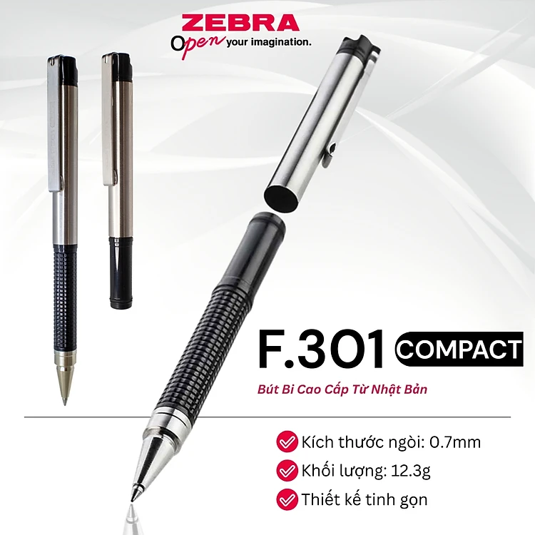 Bút Bi Cao Cấp F.301 Compact 0.7mm Zebra Pen - Mực Xanh, Thân Kim Loại, Nhẹ 12.3g [CHÍNH HÃNG]