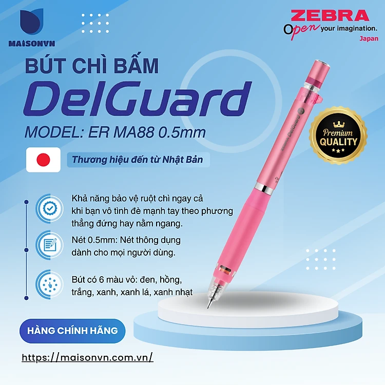 Viết chì bấm không gãy Zebra Delguard ER 0.5mm - [Chính hãng]