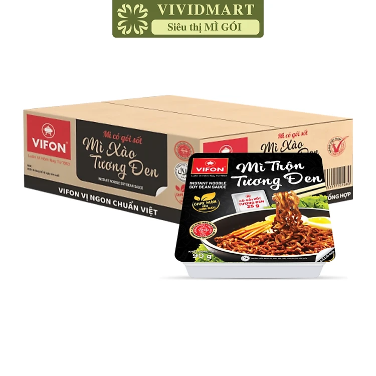VIFON - Mì khay trộn Vifon hương vị Tương đen (có gói xốt Tương đen), Mì xào tương đen Vifon khay (90g/khay)