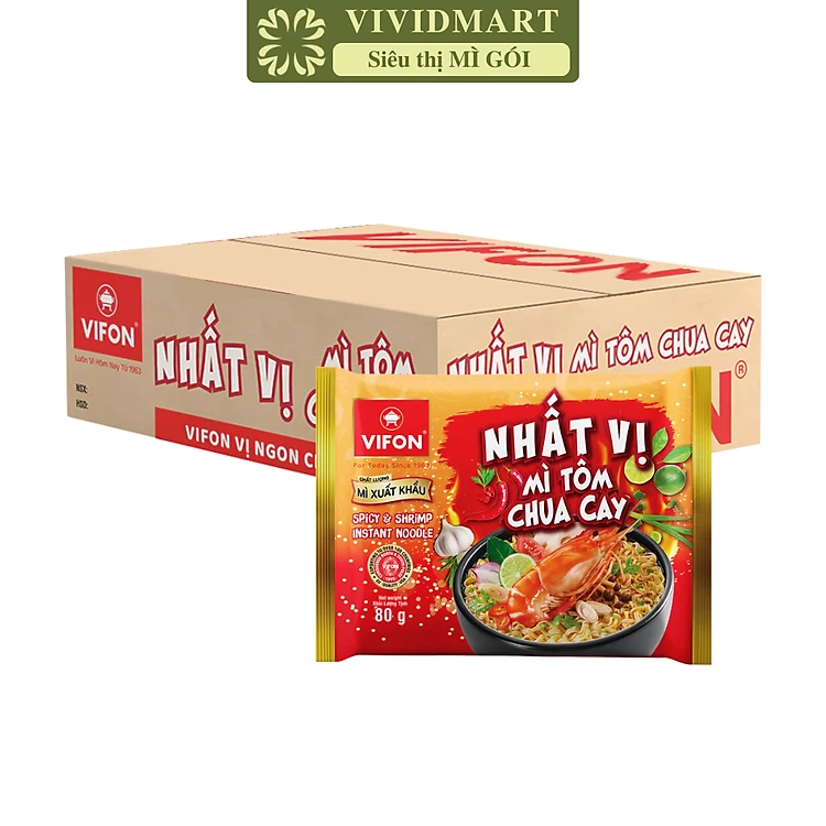 VIFON - Mì Nhất Vị hương vị Tôm chua cay, Mì tôm chua cay Nhất Vị ăn liền, Mì Vifon tôm chua cay (60g/gói)