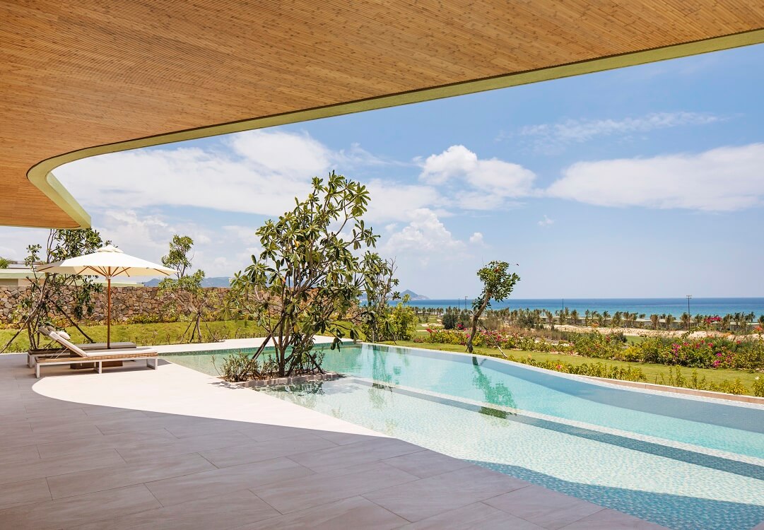 - Villa 02 phòng ngủ: Diện tích 218m2 với hiên ngoài trời rộng rãi và bể bơi riêng, hệ thống villa 02 phòng ngủ hướng sân golf hoặc hướng biển sẽ đem lại những giây phút thư giãn riêng tư tuyệt đối.