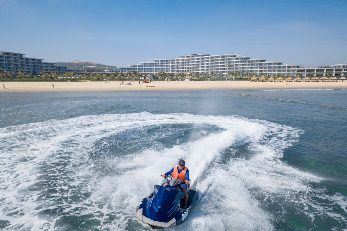 - Hãy cùng hòa mình vào thiên nhiên tươi đẹp và tham gia các hoạt động vui chơi ngoài trời trên bãi biển lộng gió hay giải trí với nhiều trò chơi thể thao dưới nước hấp dẫn của khu nghỉ.