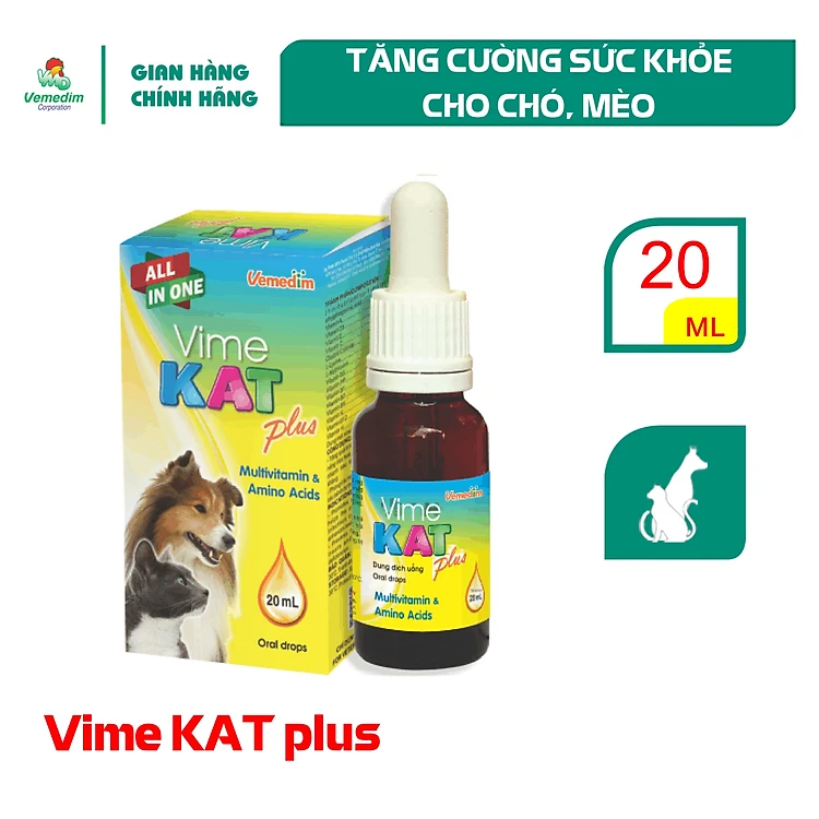 Vimekat plus - Tăng cường sức khỏe chó, mèo, vẹt, chim kiểng, Chai 20ml, Sản phẩm Vemedim