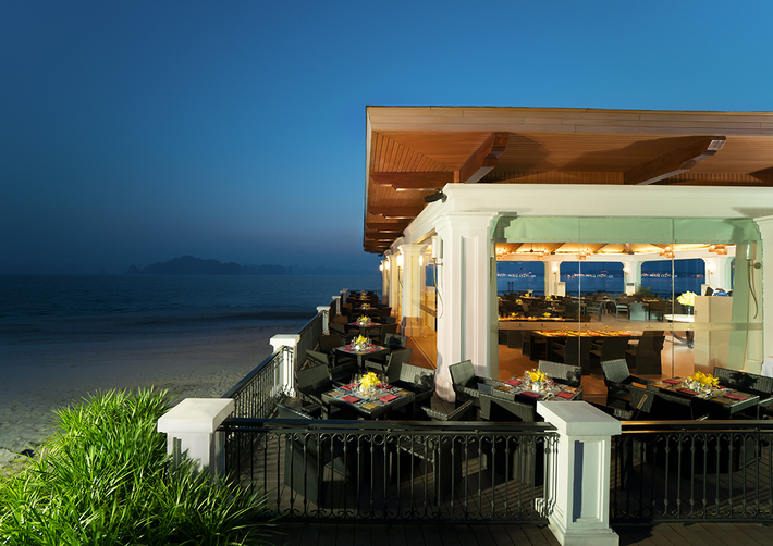 Nhà hàng Pavilion nổi bật với kiến trúc nhà chòi trên mặt biển, nơi mang đến cho du khách những món ăn được chế biến từ hải sản tươi ngon và BBQ độc đáo, đậm bản sắc hương vị Việt. Với vị trí trên mặt biển, bạn có thể vừa thưởng thức món ăn, vừa tận hưởng cảm giác mát lạnh từ những làn gió mát rượi từ biển.