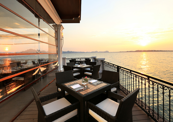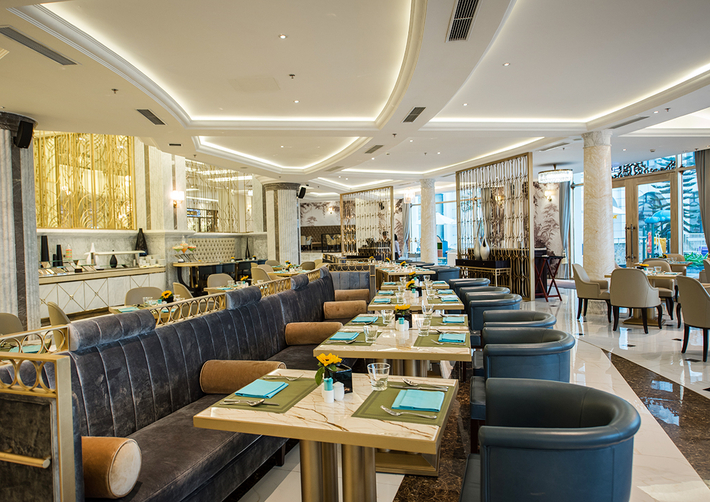 Còn tại tầng 2 với tầm nhìn hướng toàn cảnh vịnh, Nhà hàng Bay View được thiết kế sang trọng, ấm cúng, chuyên phục vụ thực đơn gọi món và buffet đẳng cấp quốc tế từ sáng đến tối muộn. Đến với nhà hàng, du khách sẽ hài lòng với các món ăn được chế biến khéo léo từ đội ngũ đầu bếp giàu kinh nghiệm và phong cách phục vụ ân cần của nhân viên.