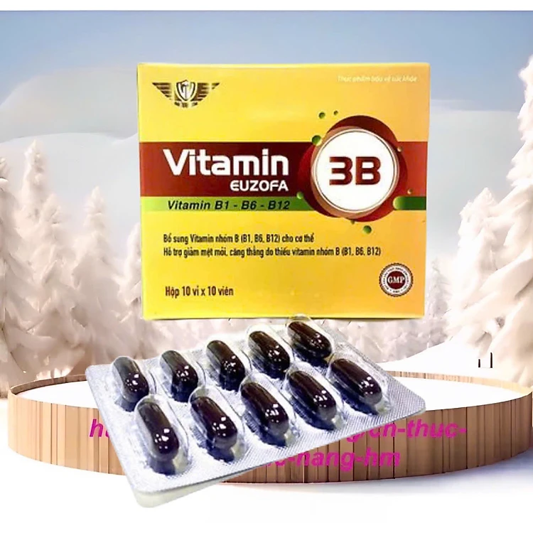 Vitamin 3B Euzofa, hộp 100 viên nang mềm, hỗ trợ giảm mệt mỏi, căng thẳng do thiếu vitamin nhóm B