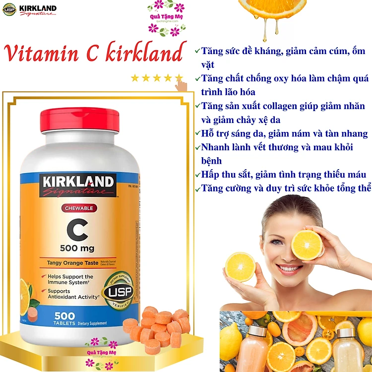 Vitamin C Kirkland Signature Mỹ Tăng cường sức đề kháng, Sáng da, làm chậm quá trình lão hóa, nhanh lành vết thương (bệnh) - QuaTangMe Extaste