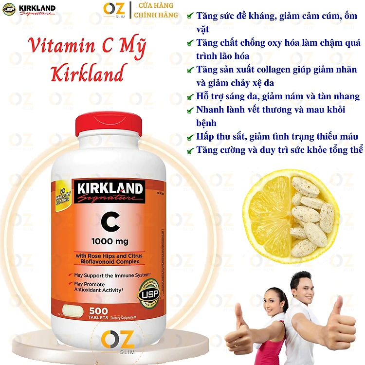 Vitamin C Kirkland Signature Mỹ Tăng cường sức đề kháng, Sáng da, làm chậm quá trình lão hóa, nhanh lành vết thương - OZ Slim Store