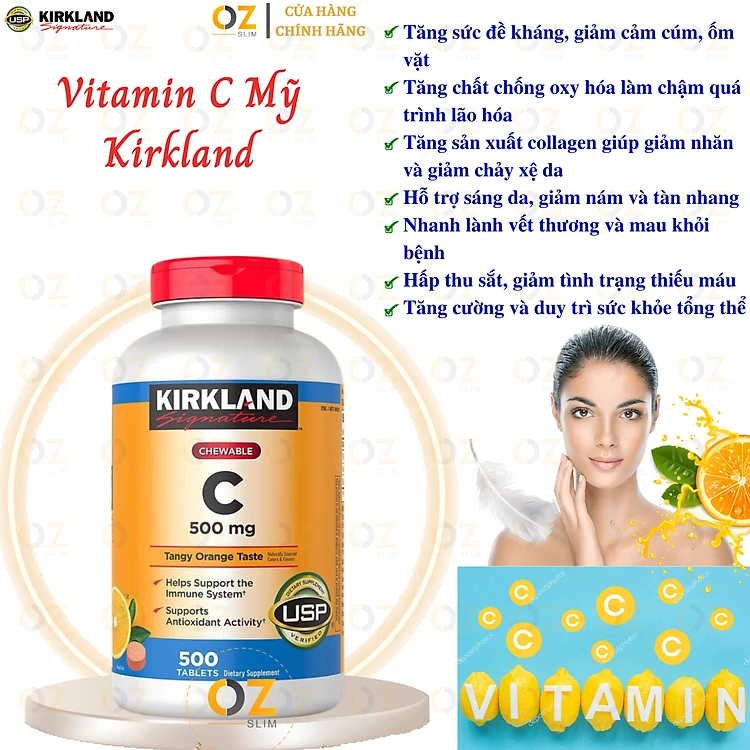 Vitamin C Kirkland Signature Mỹ tăng sức đề kháng, thức đẩy sẩn xuất collagen tự nhiên, sáng da, nhanh lành bệnh (bệnh) - OZ Slim Store