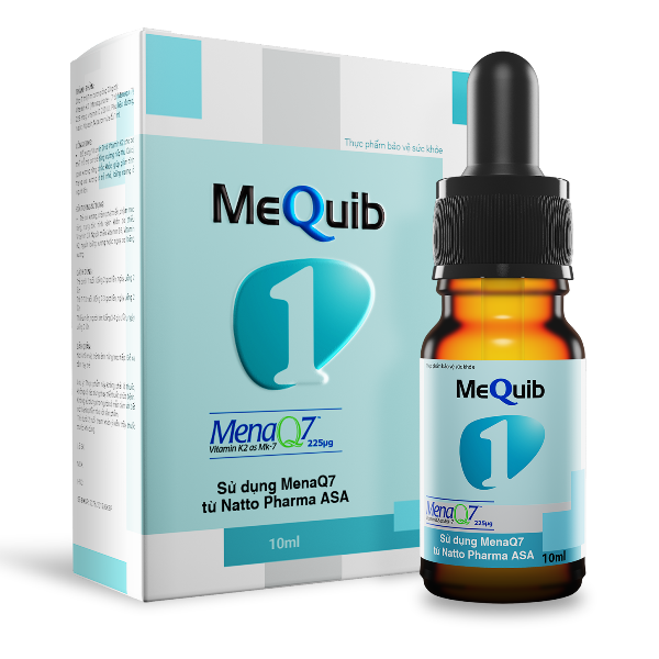 - Vitamin K2 nhạy cảm với ánh sáng cường độ mạnh, hạn chế 25-30% hàm lượng sau 6 giờ liên tiếp tiếp xúc với ánh sáng cường độ mạnh nên chai Mequib 1 dạng tối màu, và có nhãn chặn ánh sáng, được đựng trong 1 hộp giấy Mequib 1