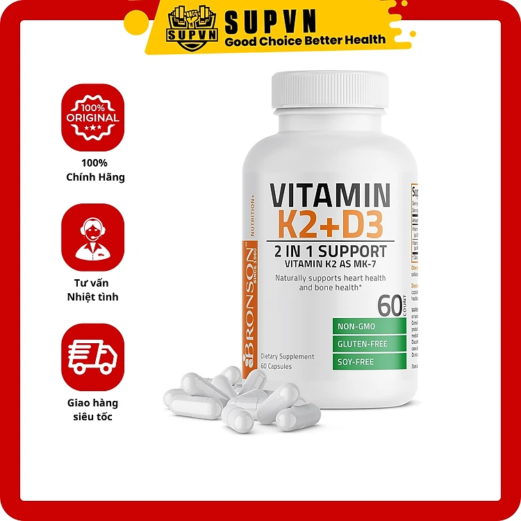 Vitamin K2 D3 - MK7 Bronson 250 Viên Hỗ trợ Giúp Xương Chắc Khỏe, Tăng Hóc Môn, Phát Triển Cơ