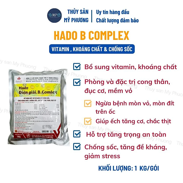 Vitamin khoáng trộn điện giải chống sốc Hado b.Complex tăng trọng giúp tăng cơ chống mòn vỏ cho tôm thẻ cá lươn ếch ốc b