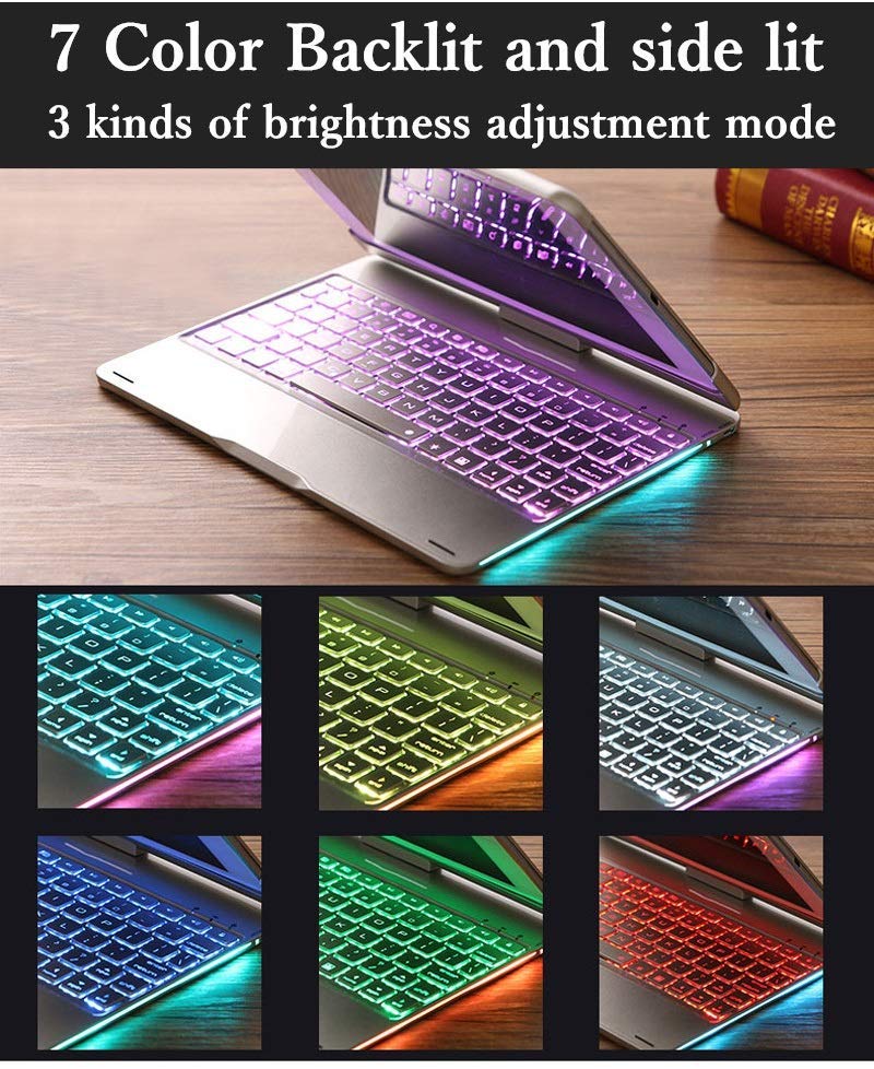 Vỏ bàn phím hợp kim nhôm có 7 màu đèn - xoay 360 độ dành cho ipad 10.2 inch